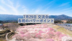 こちらでは7月11日の交流会での各班のパワーポイントファイルを掲載しています! 以下リンクより、各班のパワーポイントに飛ぶことができます!!